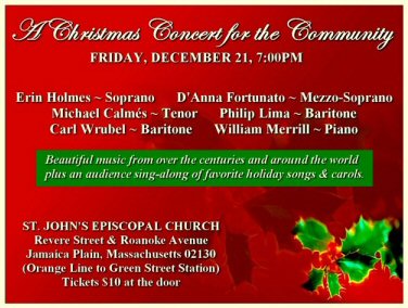 An Evening with D'Anna Fontunato, mezzo-soprano, Peter H. Bloom, flute, and Mary Jane Rupert, piano.